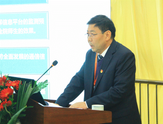 院长赵兰畔作学院诊改工作汇报,他从传承邮电文化,突出行业特色;注重两链打造、健全质保体系;落实主体责任、全面实施诊改;凸显诊改成效、筑牢提升基础;明确努力方向,持续改进提升五个方面汇报了学院内部质量保证体系诊断与改进工作。
